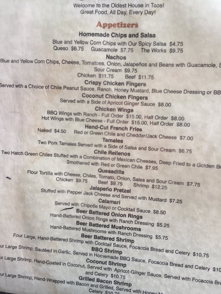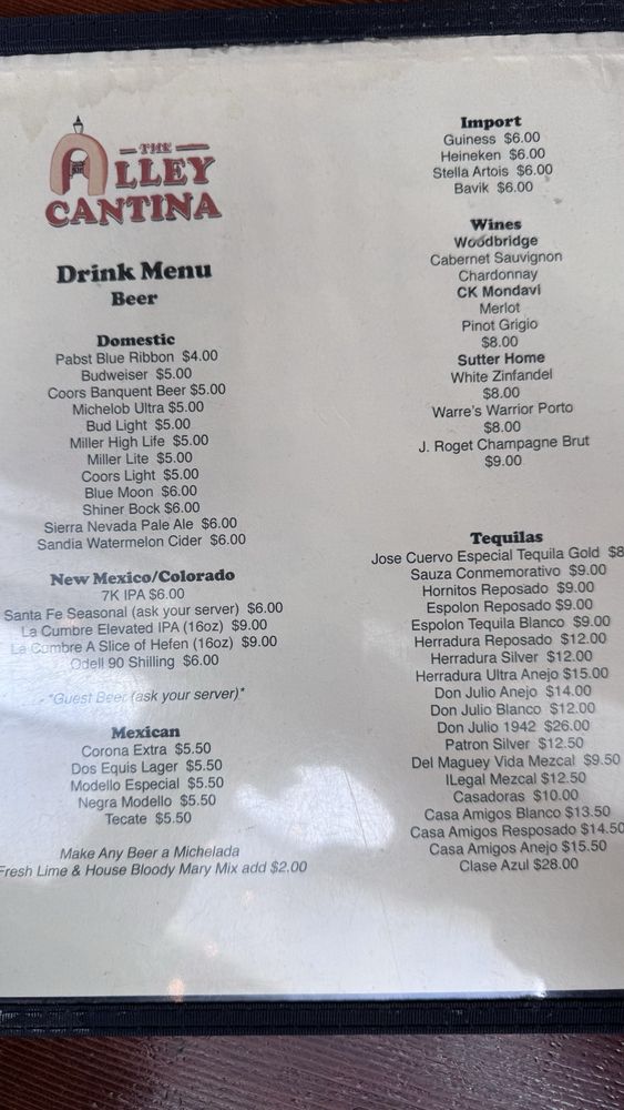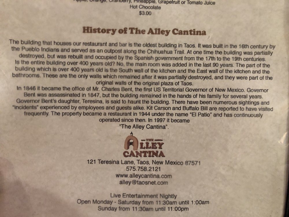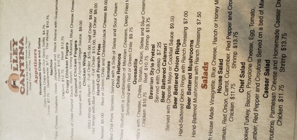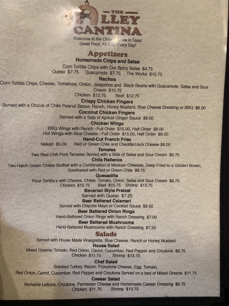 Alley Cantina the Taos Plaza Menu (2025 Update)